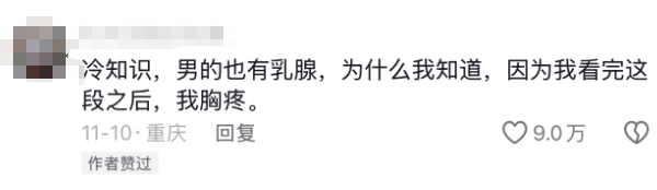 “冷知识,男的也有乳腺,因为我看完之后气到胸疼。”