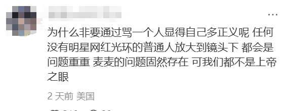 “为什么要通过骂一个人来显得自己多正义呢?麦琳的问题固然是有, 但任何人放大到镜头下,都会存在很多问题。”