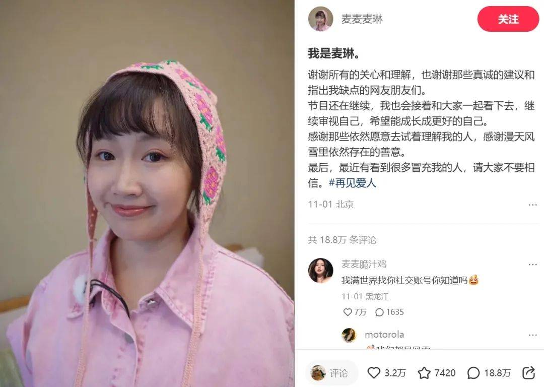 “ 李行亮同样存在问题,虽然我和周围的朋友共情麦琳,但并不认同她的行为。”