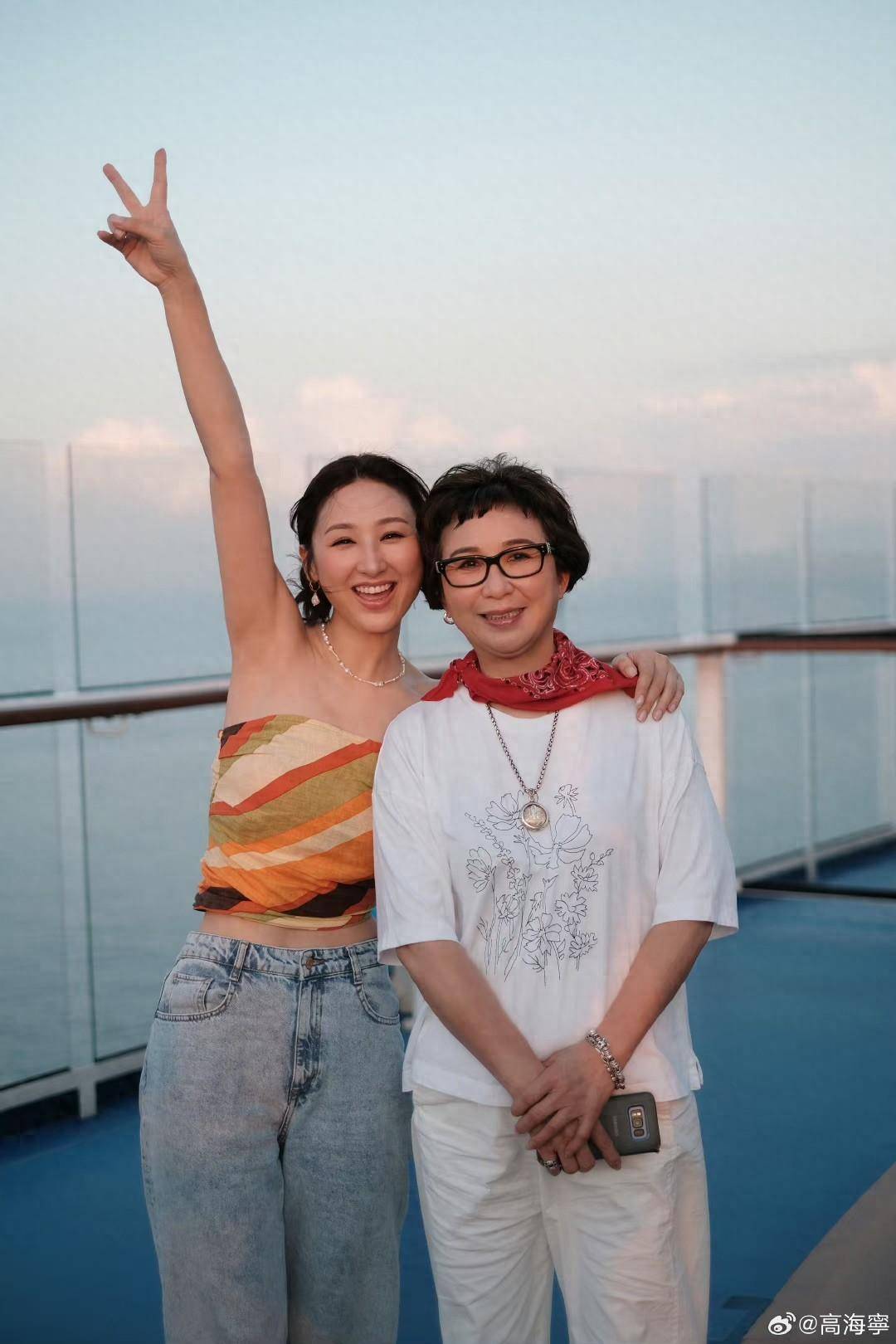 而母女合照的时候,高海宁开心的搂着母亲的肩膀,二人表现的很亲密,高海宁穿着条纹衬衫,一头齐肩发披散下来,虽然她只是化了淡妆,但依旧很有气质,母女俩的轮廓看起来出奇的相似,想来高海宁也是继承了母亲的高颜值。