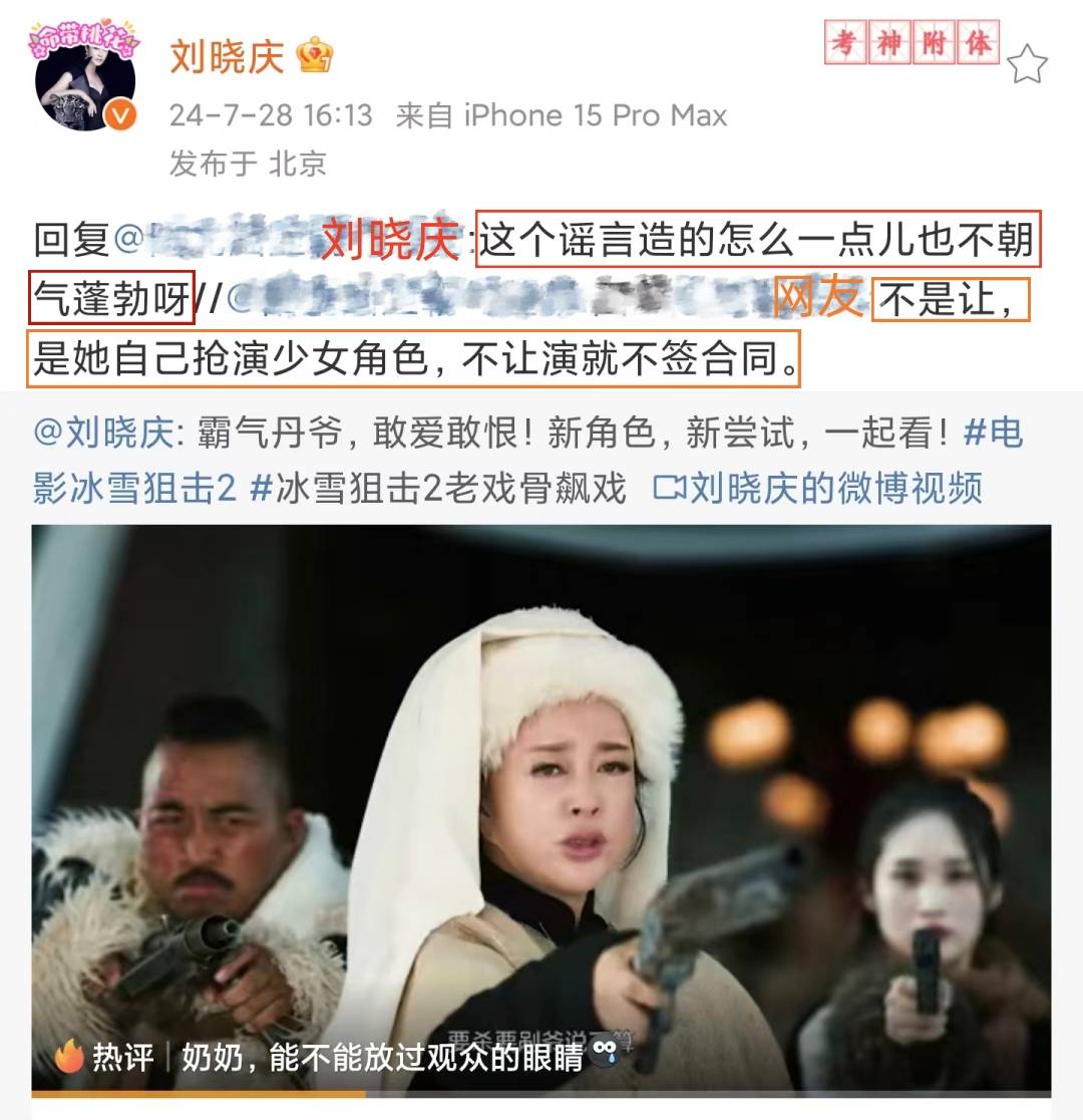 其实刘晓庆与网友讨论的这件事源自于2023年上映的网络大电影《冰雪狙击2》。