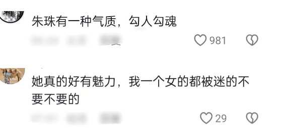 基本上只要与朱珠有关的动态,评论区都会夸赞她的美貌,颜值是公认的高。