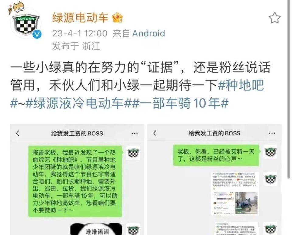 对于一个节目来说,活跃的粉丝往往意味着高流量和高购买力,这增加了节目的商业价值,让节目在吸引投资方面处于更有利的地位。《种地吧》粉丝的“可玩性”水平,在当前的综艺行业中是相当罕见的。一方面,“和货人”不仅保证自主购买行为,还自发推动投资。《种地吧》 第一季,赞助商只有少数的时候,粉丝们就亲自去社交媒体互动,呼吁节目赞助品牌。绿源电动车、好食面包等品牌的长期赞助,与“和火”人的努力密不可分。
