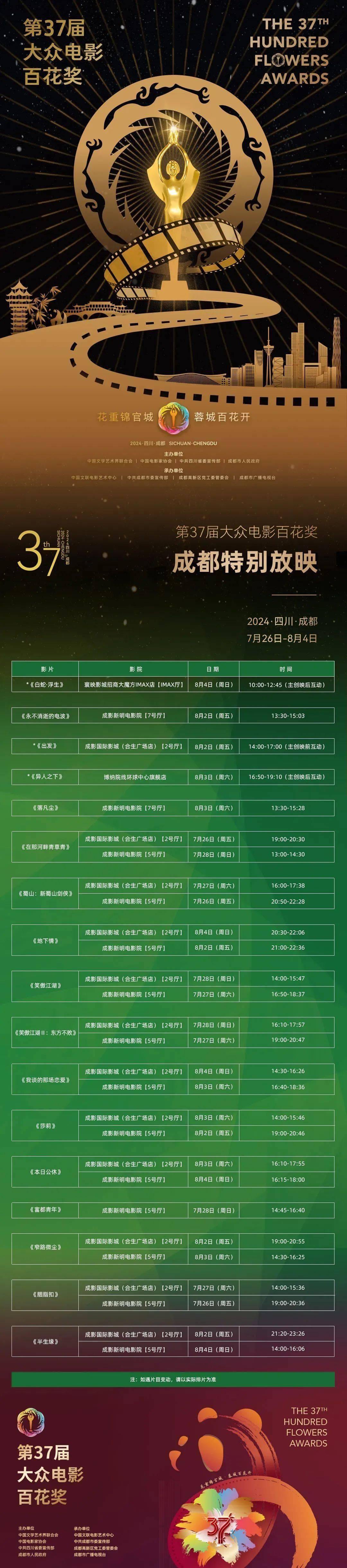 第37届大众电影百花奖百花影展排片发布,其中包括了“繁花竞放”优秀影片回顾展和成都特别放映单元两个影展的排片信息。