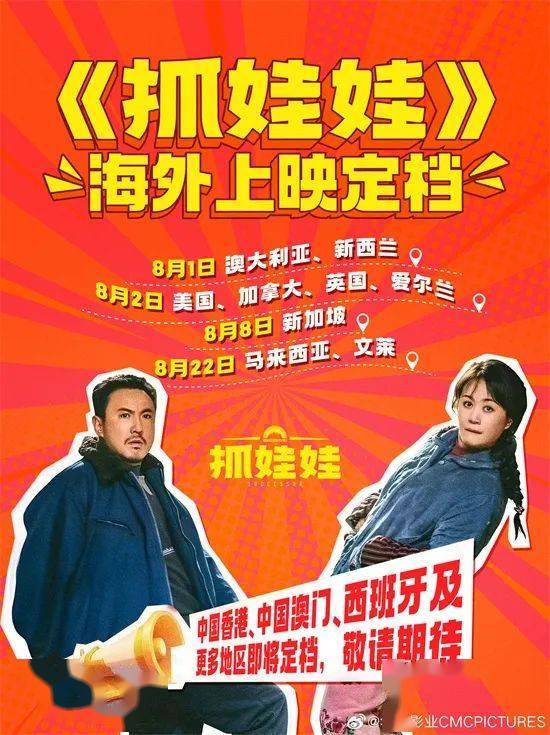 电影《抓娃娃》宣布将在全球多地上映。该片计划于8月1日,在澳大利亚、新西兰上映;8月2日,于美国、加拿大、英国、爱尔兰上映;8月8日,在新加坡上映;8月22日,在马来西亚、文莱与观众见面。中国香港、中国澳门、西班牙及更多地区即将定档。影片由闫非、彭大魔执导,沈腾、马丽领衔主演,截至目前,影片累计票房突破23亿,暂列2024暑期档票房冠军。