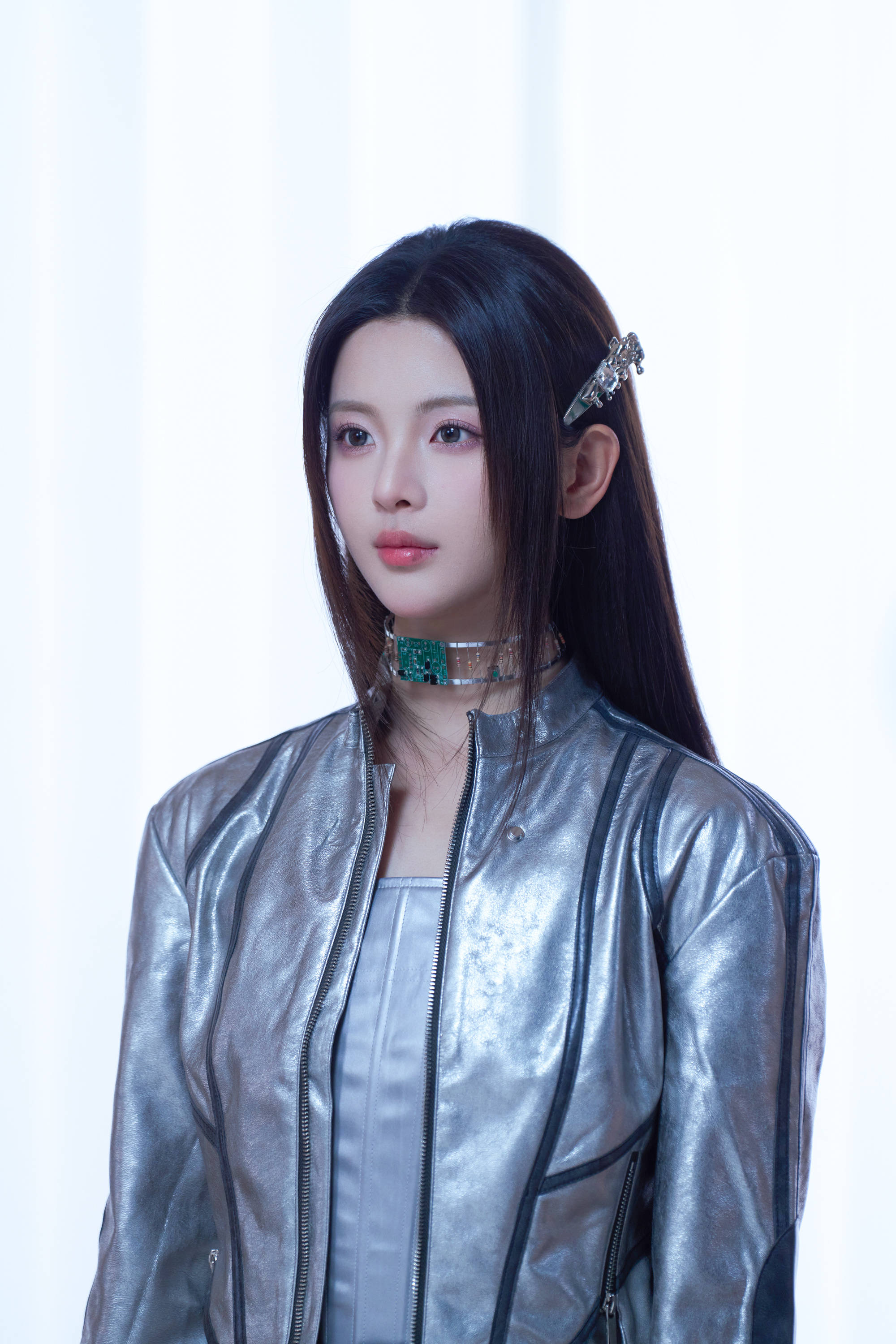 杨超越颈戴芯片科技感满满。