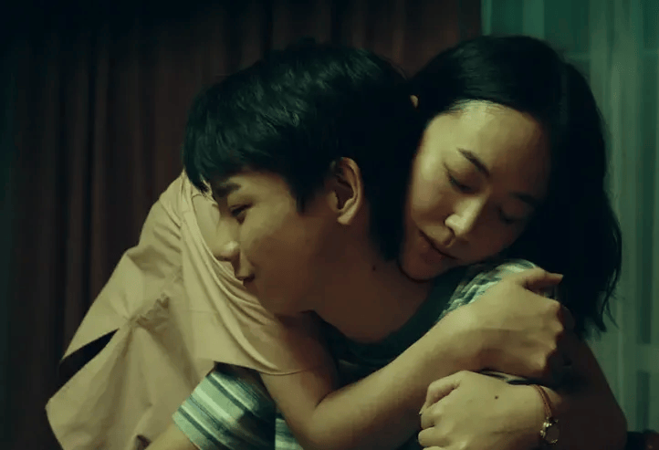 面对拿着刀把自己逼到绝境的朝阳,母亲哭着倒在地上: