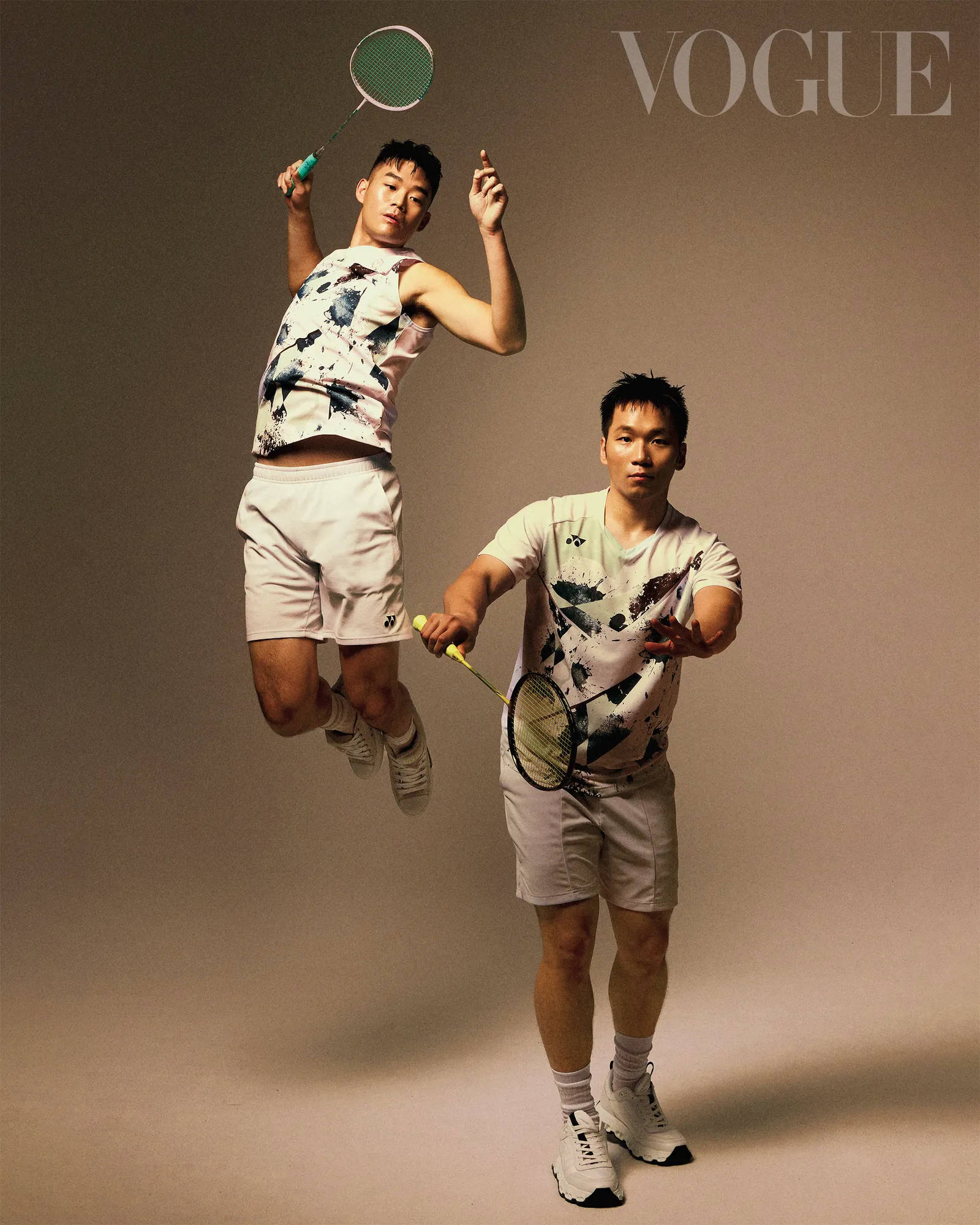 王齐麟和李洋穿紧身衣显肌肉线条。