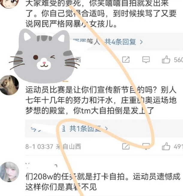 不仅如此,如果节目组只顾录制节目兴奋开心,不注意比赛场上的节奏和结果和运动员心情,一旦曝光,也会被吐槽。