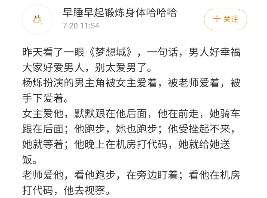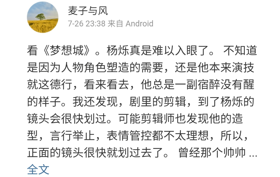 而这次,杨烁在《梦想城》中的表现同样令人失望,有网友表示,看来他想摆脱“油王”之位有点悬了,他在剧中总是伴随着各种挤眉弄眼的耍酷,表情夸张得像是一只猴子,总是在观众意想不到的地方,加入各种突兀的挑眉、瞪眼、撇嘴,无论再严肃的场合,他仍然可以笑得很开心,面部的胡茬都遮不住他的油腻,在这个领域,连霸总黄晓明都完全不是他的对手。