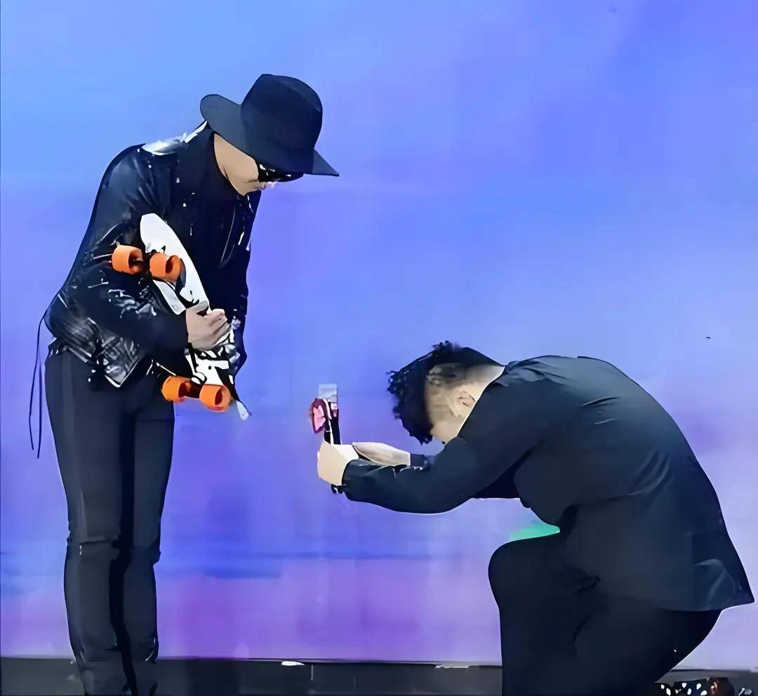 杜海涛说演完话剧那一刻,是自己人生最高光的时刻,但大量观众依然忘不了他人生最不堪的时刻,那就是单膝下跪给自己的偶像韩国艺人权志龙颁奖。