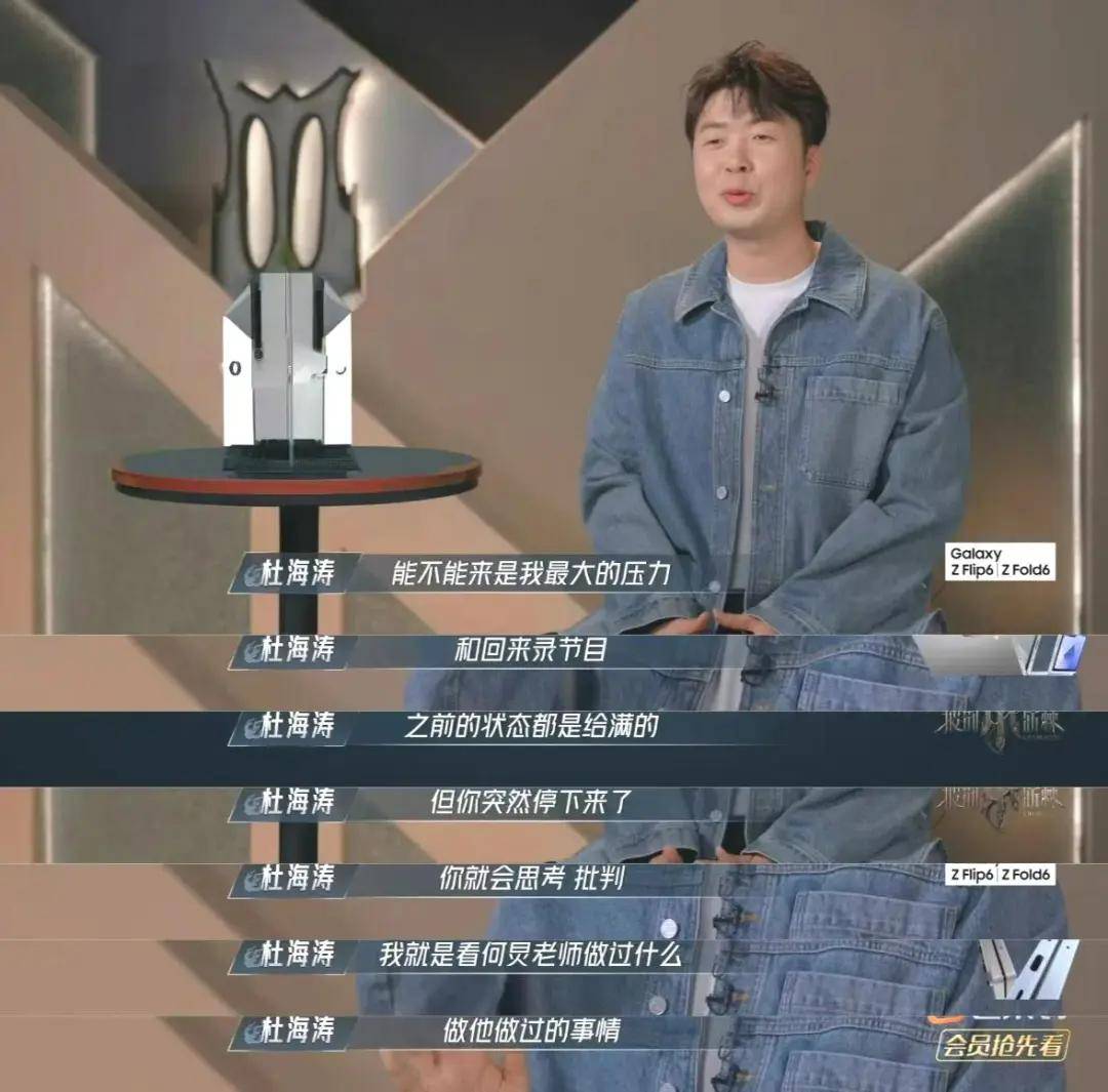 杜海涛虽然没有提“快乐大本营”这5个字,但还是隐约提到了,说之前的状态都是给满的,但突然停下来之后就会思考、批判和优化自己。