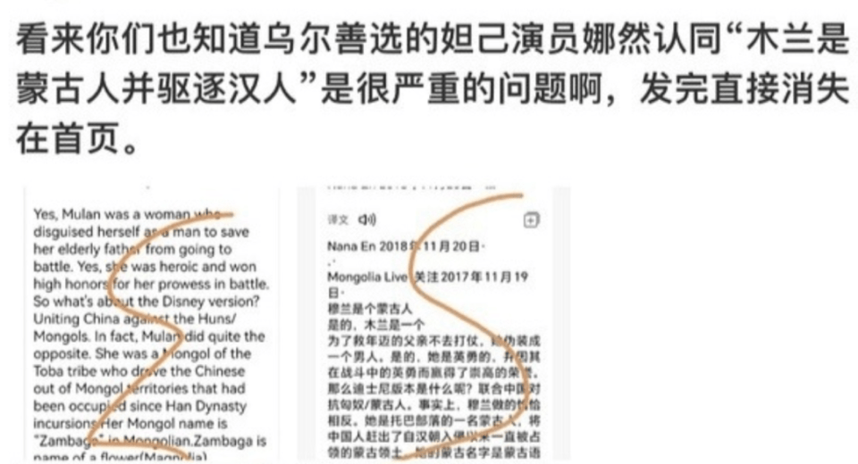 还有不少网友对刮骨刀夏禾扮演者娜然已经败光了好感,因为娜然之前曾经被扒出,在外网点赞过一个言论,说花木兰其实是蒙古人,严重违背了历史。
