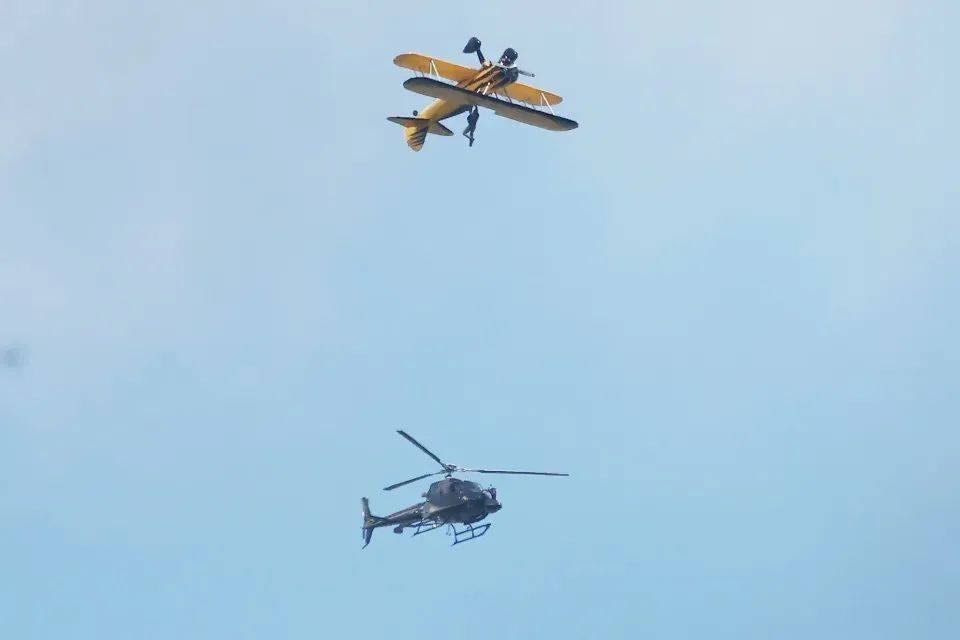 《碟中谍8》片场,挂飞机的阿汤哥: