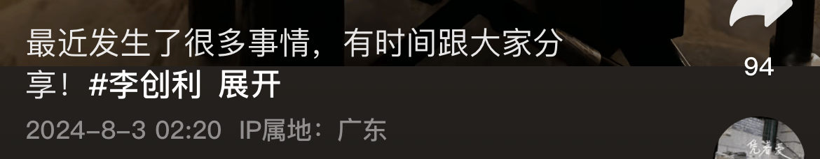 8月3号凌晨,已断更近半年的网红富豪李创利突然更新视频账号,并在留言处说了一段意味深长的话语:最近发生了很多事情,有时间跟大家分享。