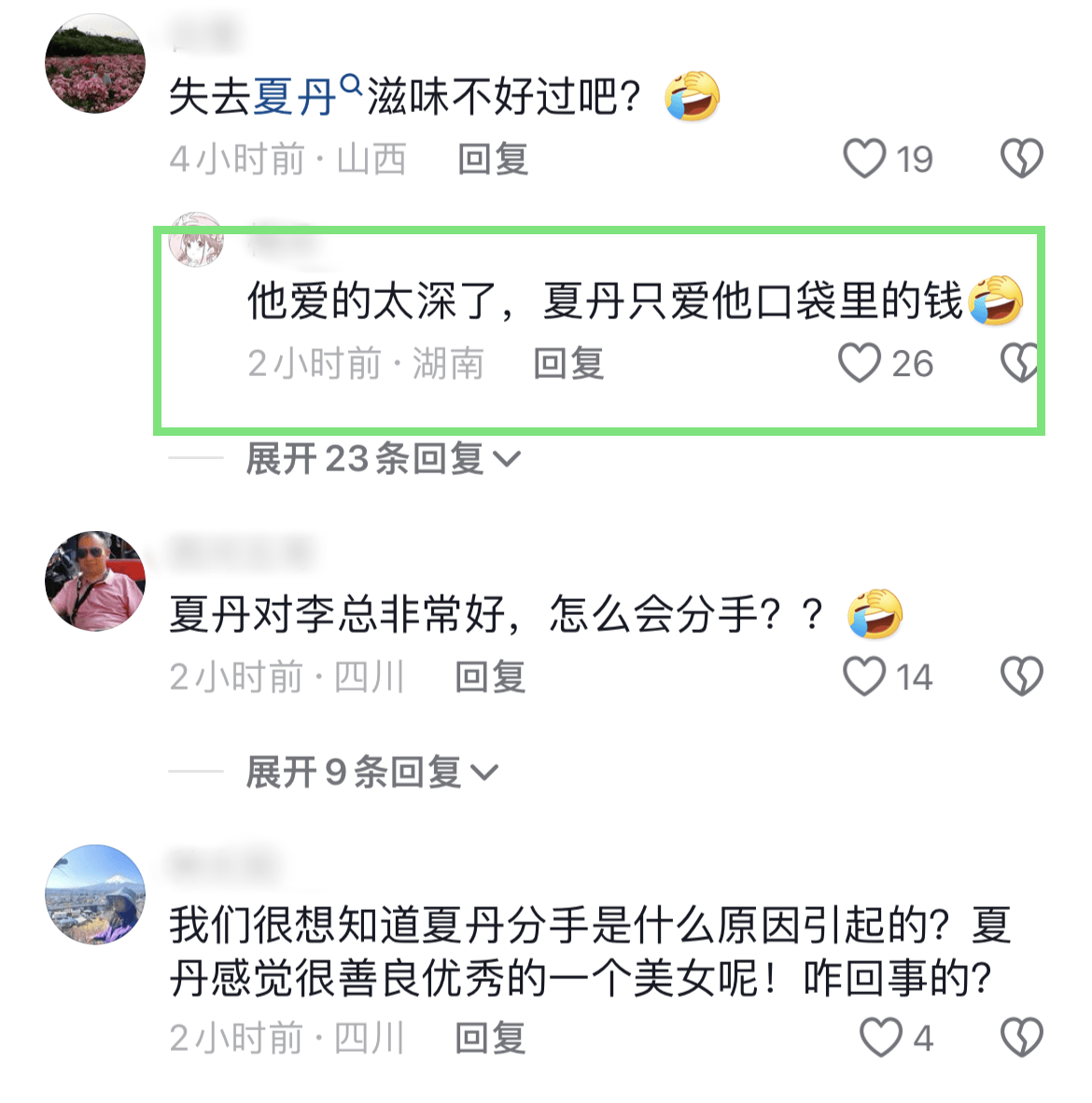 翻看留言处不难发现知情人的曝料,但所谓的“曝料”对两人好似都不那么友好。有人说是李创利出了轨,也有人说是夏丹为其戴了一顶帽子,还有网友透露,夏丹在早前的直播中曾表示,李创利与她人领证结婚。