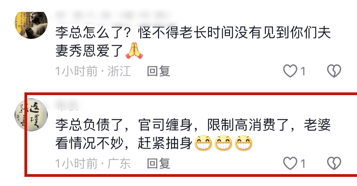更有网友透露,李创利负债,官司缠身,被限制高消费了,看到其情况不妙,所以及时抽身。