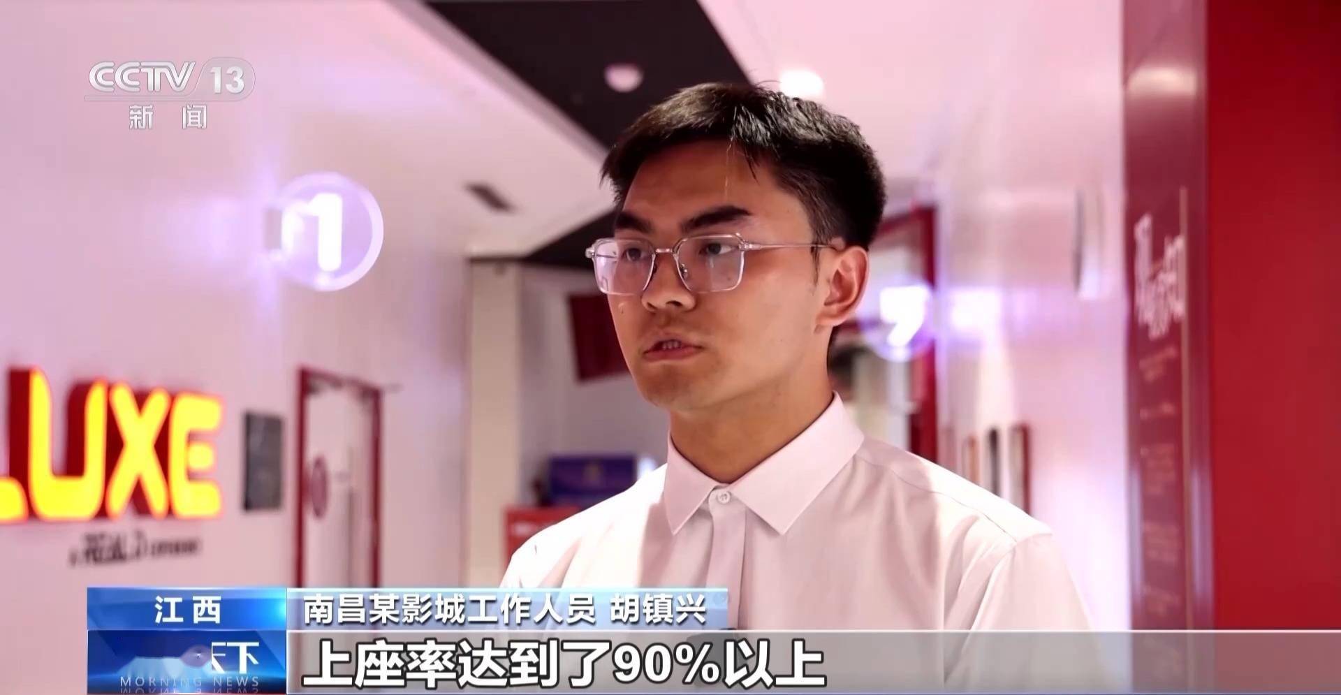 南昌某影城工作人员 胡镇兴:每场电影的上座率都比平时高出2倍,尤其是周末和晚上的黄金时段,上座率达到了90%以上。