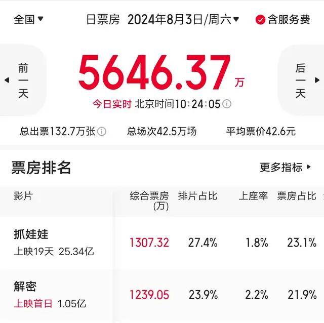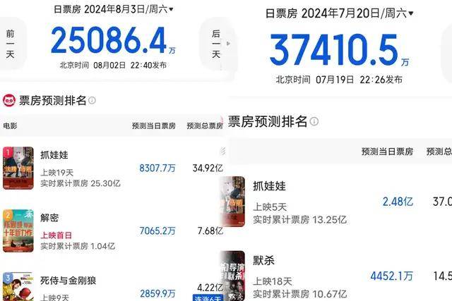 截止发稿前,《抓娃娃》日票房已实现对《解密》的反超,太快了!