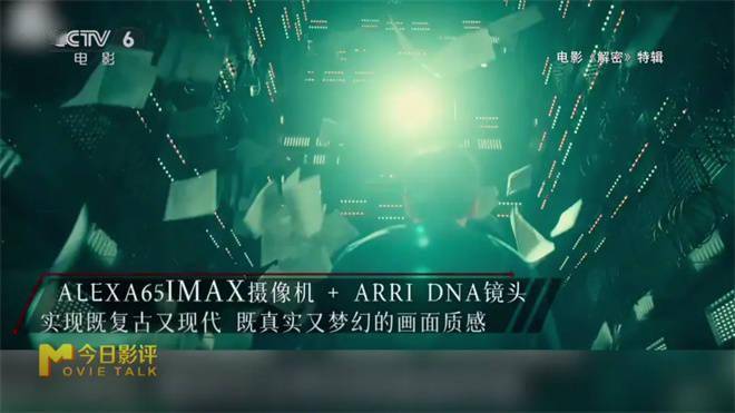 IMAX特制拍摄指的是前期跟后期全流程化的,首先前期要用IMAX认证的摄影机,《解密》用的是最高级的Alexa65,全世界只有六十六台,专业上来说,就是它在水平的视角上面信息量是普通摄影机的两倍,所以更会有大片的感觉。
