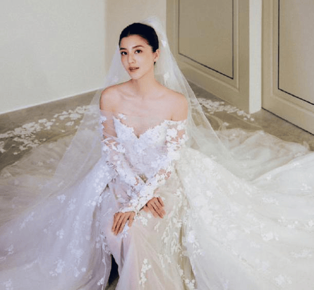 本来吴千语就是超级模特,在这一个特殊的婚纱加持之下,可以想象他在婚礼上面穿着婚纱就会像公主一般漂亮,自己参加设计的婚纱,