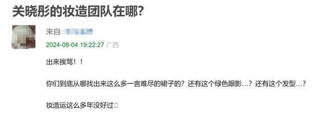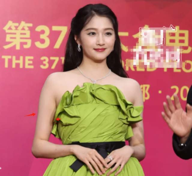 不知道是不是因为天气比较热的缘故,关晓彤的妆容还有些出汗黏腻的感觉,一直被网友热议的麒麟臂也很明显,看来关晓彤也不太听劝呐。
