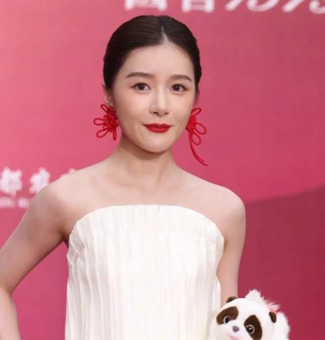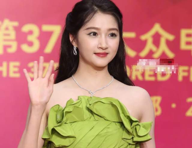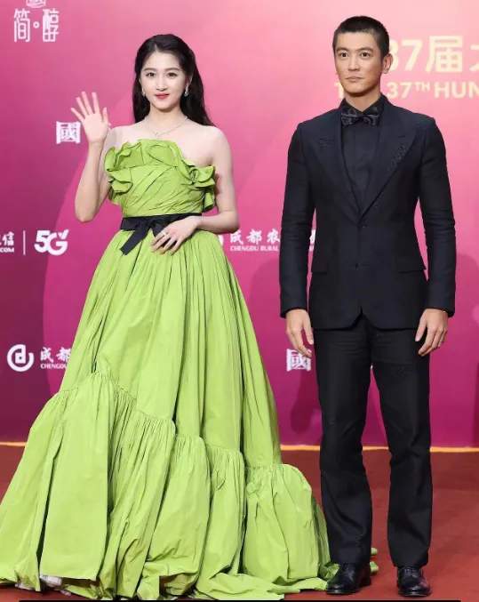第37届百花奖在成都举办,自然少不了熊猫元素,当天红毯上的吉祥物就是两只熊猫玩偶。不知道关晓彤是不是为了应景,穿了一身亮绿色的裙子,给人一种竹林的清新感。
