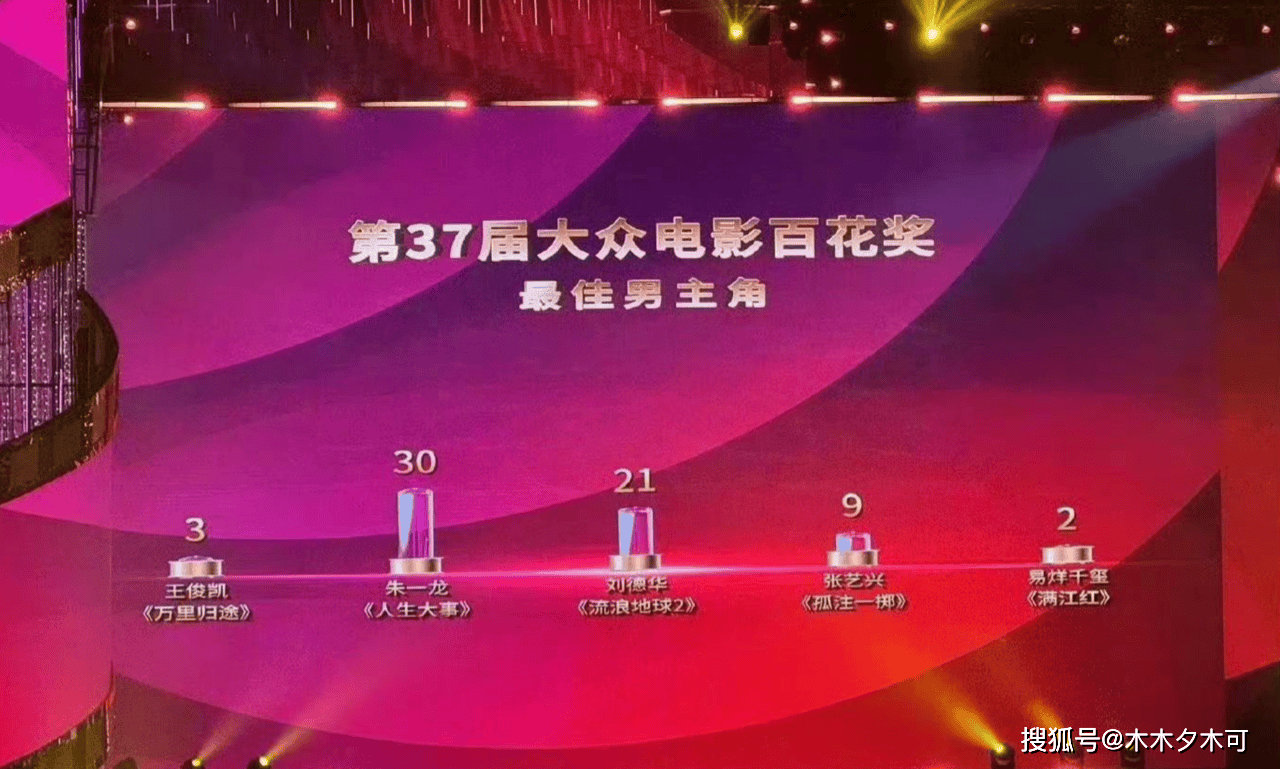 现场公布投票结果时,本以来这个奖肯定非刘德华莫属了,结果朱一龙凭借《人生大事》再度斩获最佳男主奖,票数断层式领先。