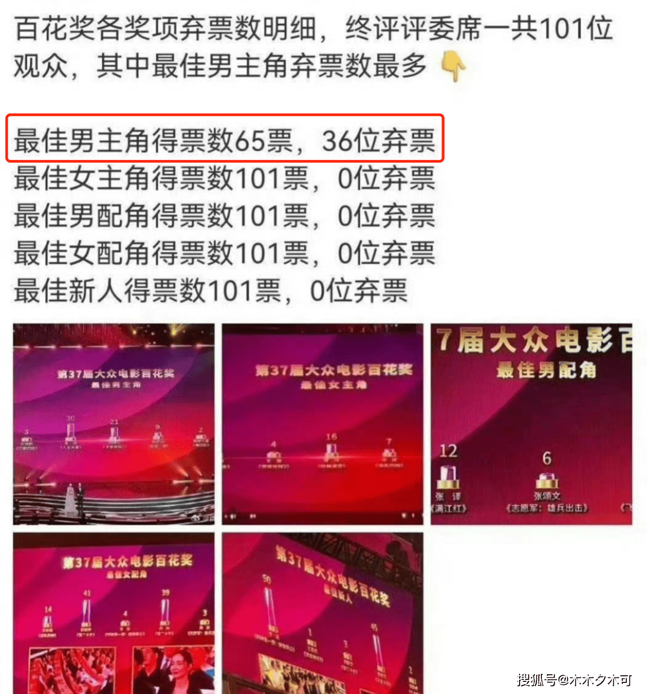 更滑稽的是,百花奖终审评委共101名,但在最佳男主角投票中,却有三分之一的人弃权,实际参与投票的才65人, 其中刘德华作为老戏骨居然不敌朱一龙,易烊千玺2票,光荣垫底, 王俊凯3票,大哥不笑二弟, 网友吐槽“百花都是内定,不会真信投票吧”,与其违心不如弃权!