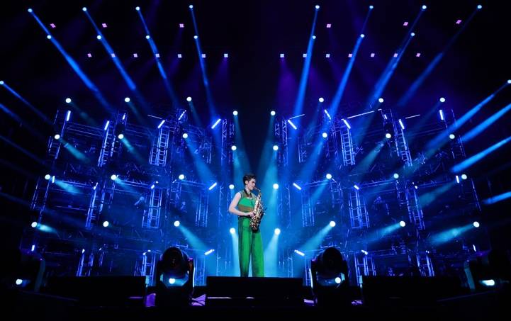 舞台上,萧敬腾的每一次表演都充满惊喜与创意。在《你》的舞台设计中,大片幕布上倒映出充满野生与热烈气息的吉他剪影,仿佛将观众带入了一个全新的音乐世界。而在《Blues》的表演中,他更是亲自上阵打鼓,搭配激昂的歌声,将演唱会推向了又一个高潮。此外,《新不了情》的舞台上,萧敬腾用萨克斯伴奏,与全场观众共同演绎这首经典老歌。