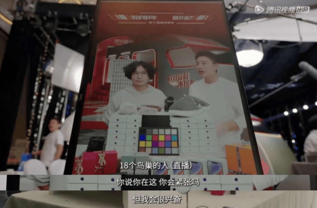 纪录片《激流时代》曾在一年的双十一探访贾乃亮的直播现场,一个透过小小的手机屏幕显示出来的直播间,背后却是一个五星级酒店的宴会厅。