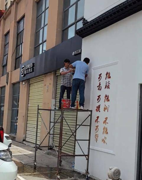 该工作室正在装修之中,张导演声称这一切都是那么的不容易。上面的字已经贴上去了。