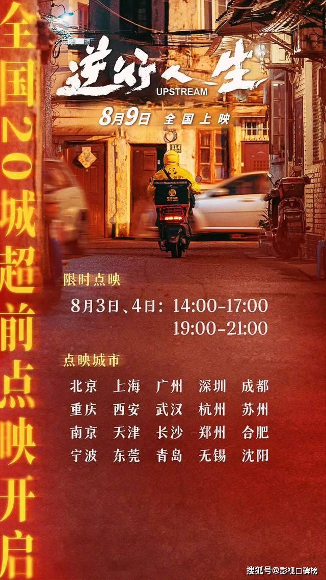 徐峥的《逆行人生》,原定于8月9日跟全国观众见面,但8月3日与4日提前一周在全国一线二十个省会城市里面限时点映。