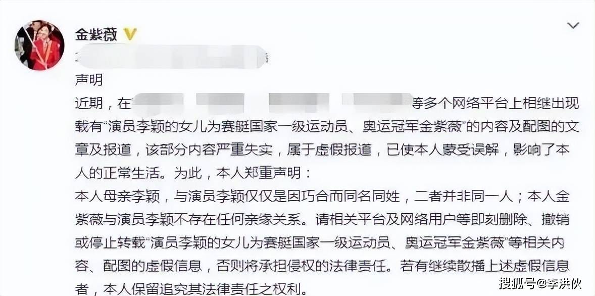 就在大家一脸羡慕的时候,奥运健儿金紫薇也发布了声明,表示她的母亲李颖并非演员李颖,两人只不过同名同姓,希望大家理智辨别,不要轻易散播谣言。