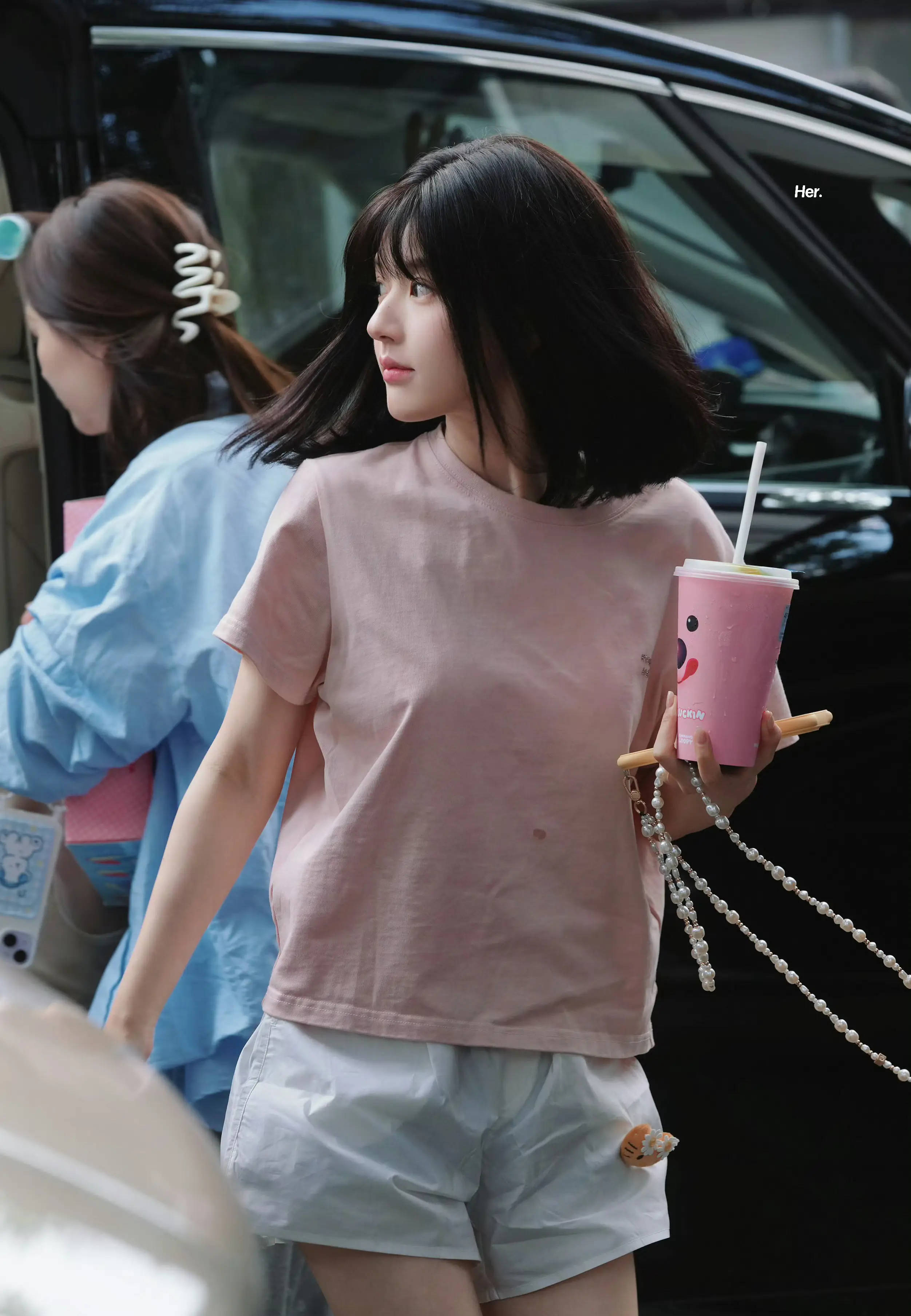 赵露思拿着饮料从镜头前走过,简直就像初中生!