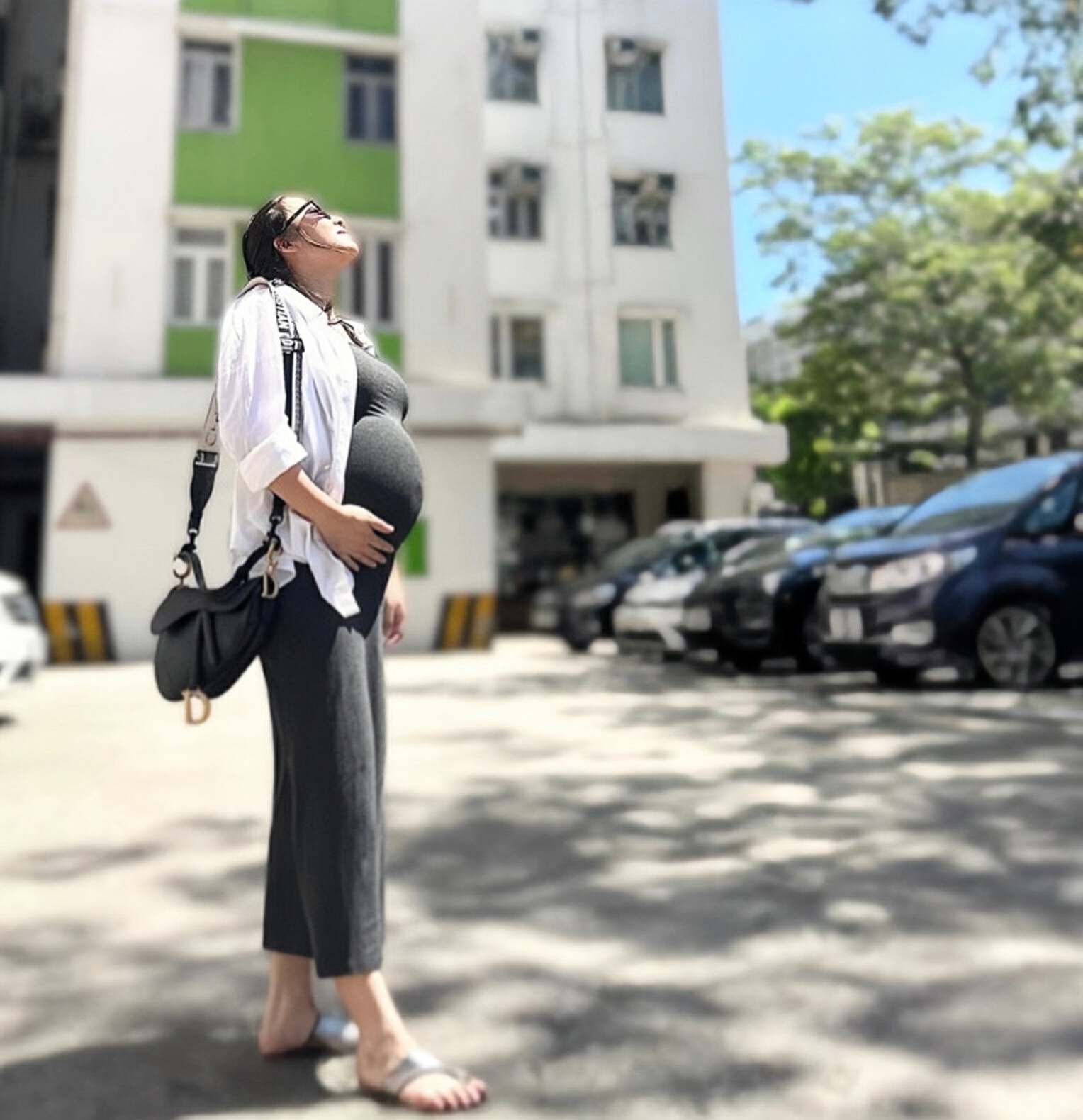 从梁颖晨分享在社交媒体上的照片可以看到,她的孕肚已经非常明显,上围也变得特别丰满。