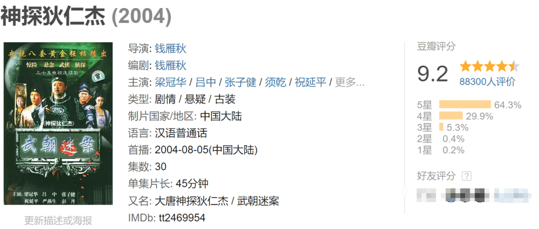 但剧情进展缓慢,狄仁杰的人设又浮夸、油腻,并未给观众在智力层面带来“卧槽”的震撼感,反而会让他们觉得“狄仁杰不过如此”,与梁冠华版《神探狄仁杰》相去甚远,周一围的演技也远不如梁冠华,以至于口碑扑街。