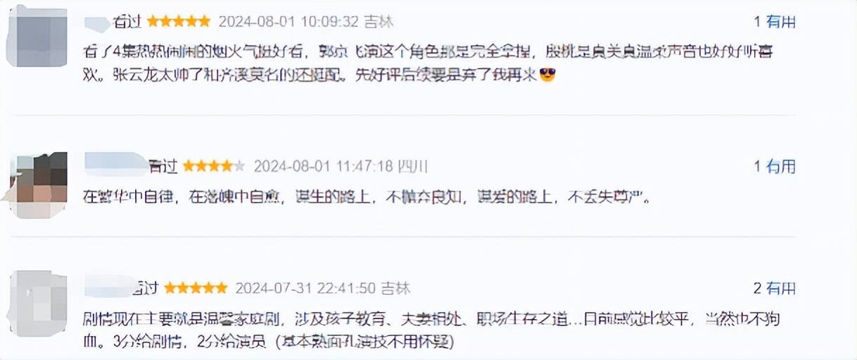 将剧中周全那种温柔细腻都给饰演了出来,也将刚刚进入不熟悉的厨房生活时候的慌张饰演了出来;同样的殷桃在剧中相当的善良,充满着女性的力量,努力向上茁壮成长,在丈夫出现事业危机时候,勇敢挑起大梁。