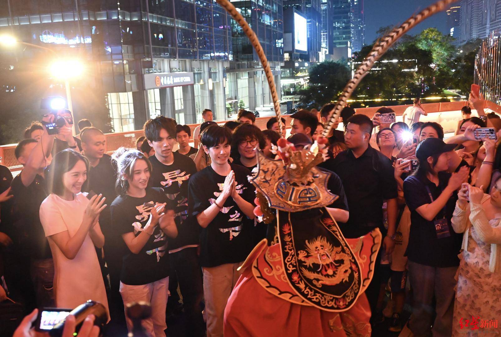 8月1日,电影工作者乌尔善、夏鹏、胡先煦、李宛妲、宋宁峰近距离打卡双子塔,“茶艺表演,盖碗茶、长嘴壶真的很绝!”“川剧变脸很精彩,演员功力深厚”,夜景辉映下,他们深深被川剧变脸和茶艺的神奇魅力折服。