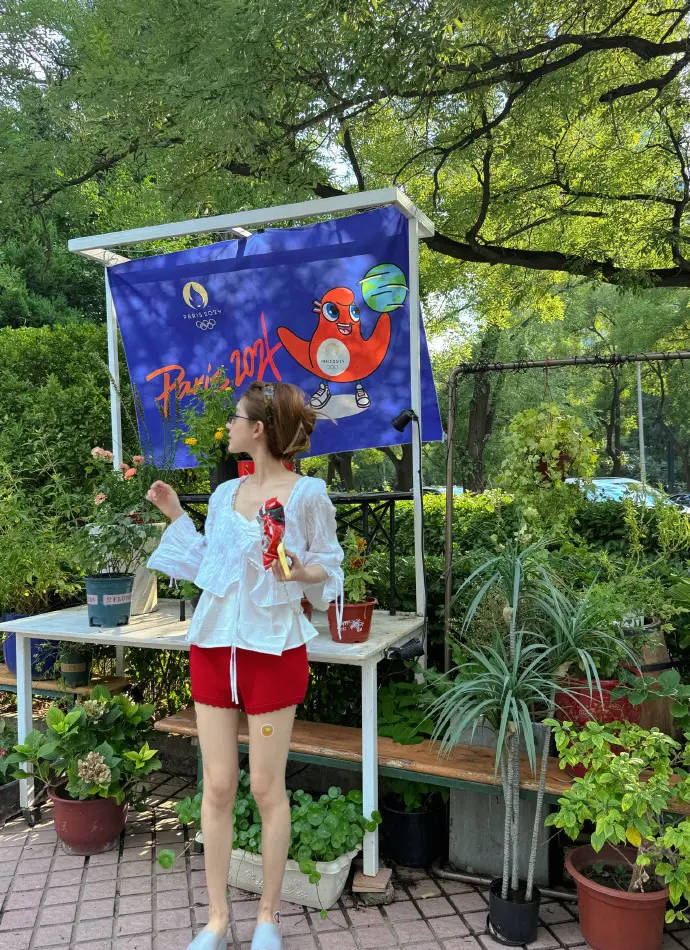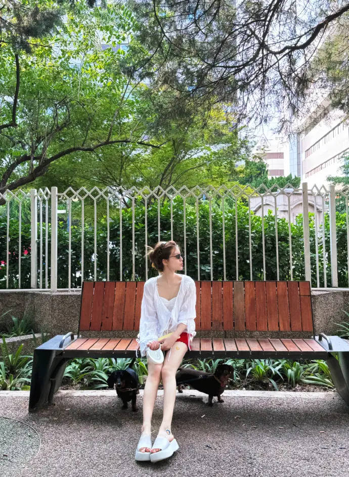 赵露思一身红白穿搭,手里捧着小零食,非常有少女感。
