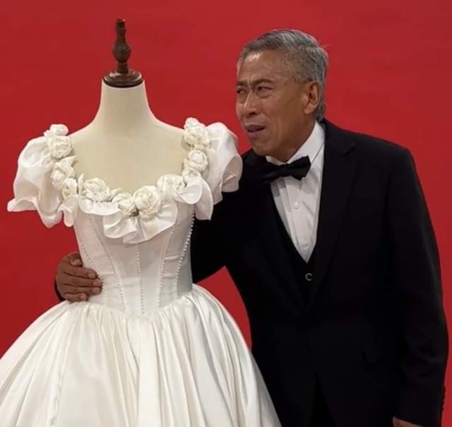 基于这样的原因,侄子特地安排了一场无与伦比的婚纱照。“周大娘”用模特代替,而周大爷则穿上黑色的西服,笑中带着泪水,就这样,一组特别的婚纱照在AI技术的作用下合成了。