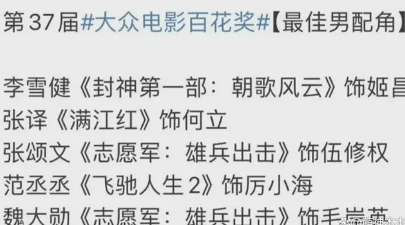 而《满江红》的另一位绝对男主沈腾,也直接消失在这次百花奖提名中。