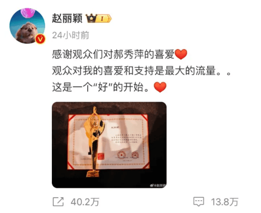 除了要恭喜《第二十条》成为本届百花奖的大赢家之外,更要恭喜赵丽颖转型的成功。