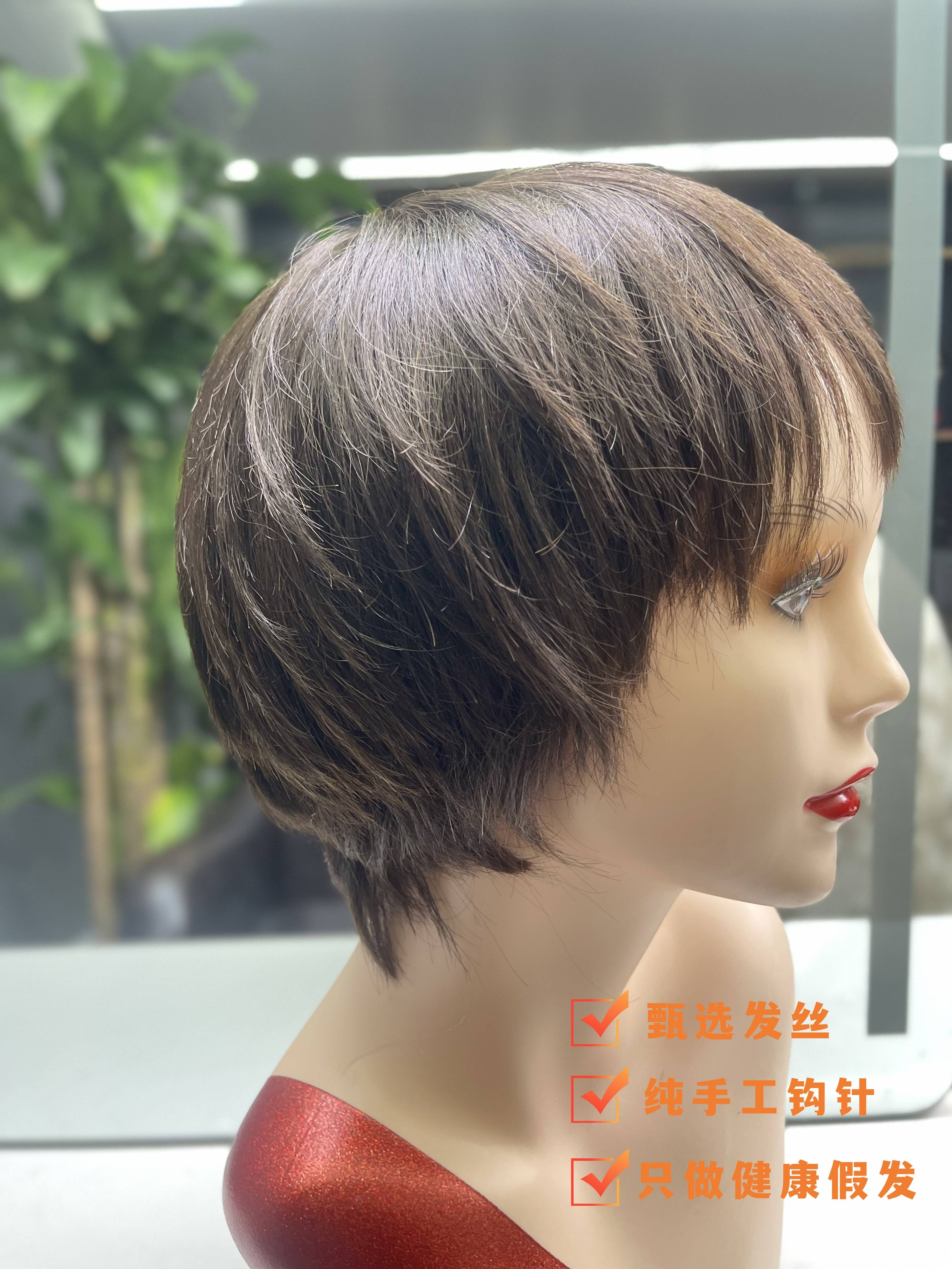 这款假发发型非常时髦洋气,来自英瑞盛世选用纯少女辫子头发生产的真人假发,发丝光泽细腻,都是从未烫染过的原生发质。纯手工制作的假发,发根纹理清晰可见,如原生头发。不仅完全遮盖了原来的白发,一出场绝对是惊艳四座!