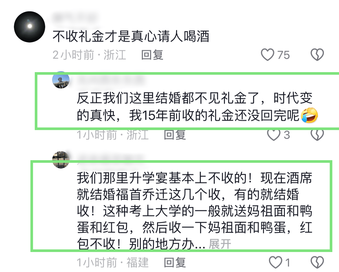 然而小黑诸鸣却表示近几年浙江已经开始实行不收礼金的习俗,所以他此次为儿子办升学宴应该也没有收礼金,但宴席规格并没有因此而降低,反而更显用心。