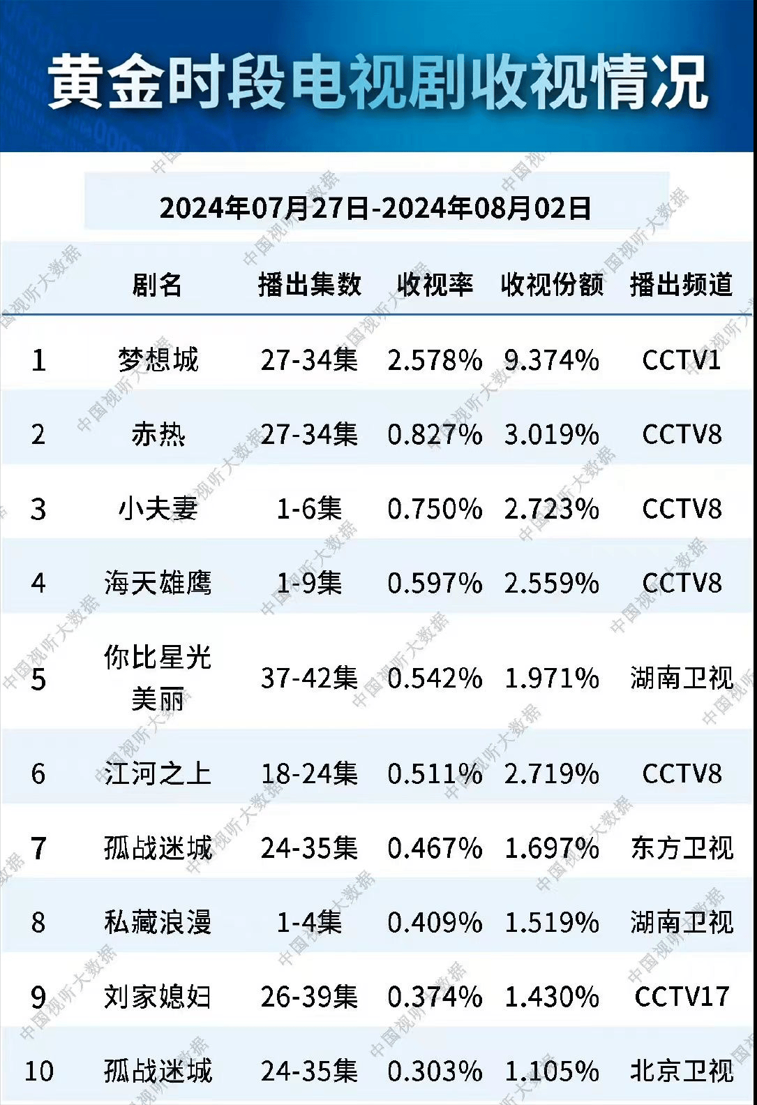 惊喜总是等待出来的,正所谓“千呼万唤始出来,犹抱琵琶半遮面。”正因等待和期待才有了惊喜,就在昨日中国视听大数据公布了最新消息,多部电视剧榜上有名,收视率更是再次创新高。