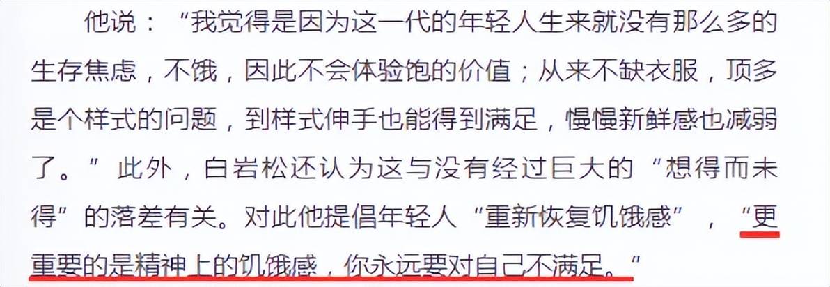 所以,白岩松倡议:重新恢复年轻人的饥饿感,特别是精神上的饥饿感。