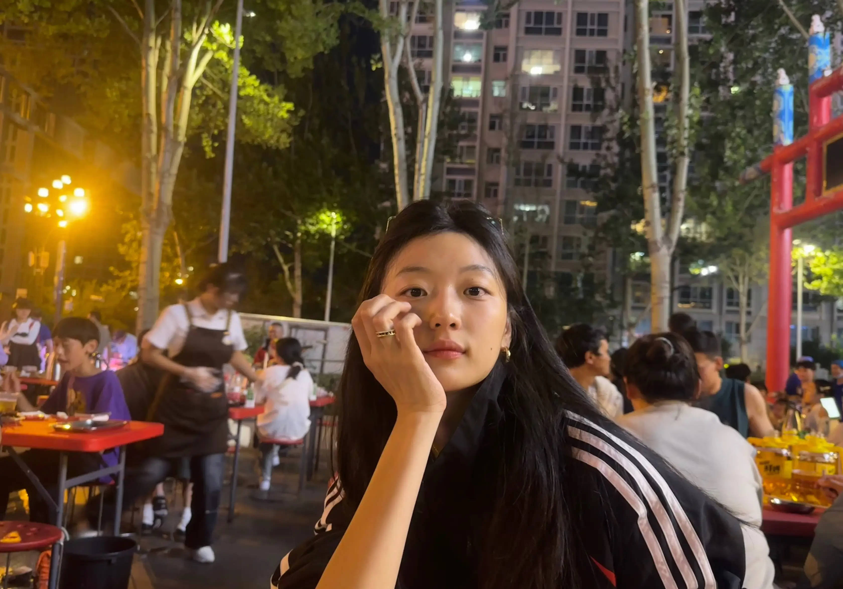 搜狐娱乐讯 8月9日,孙千晒出一组生活照。她身穿三道杠运动服,漫步街头随性松弛,笑容甜美可爱。