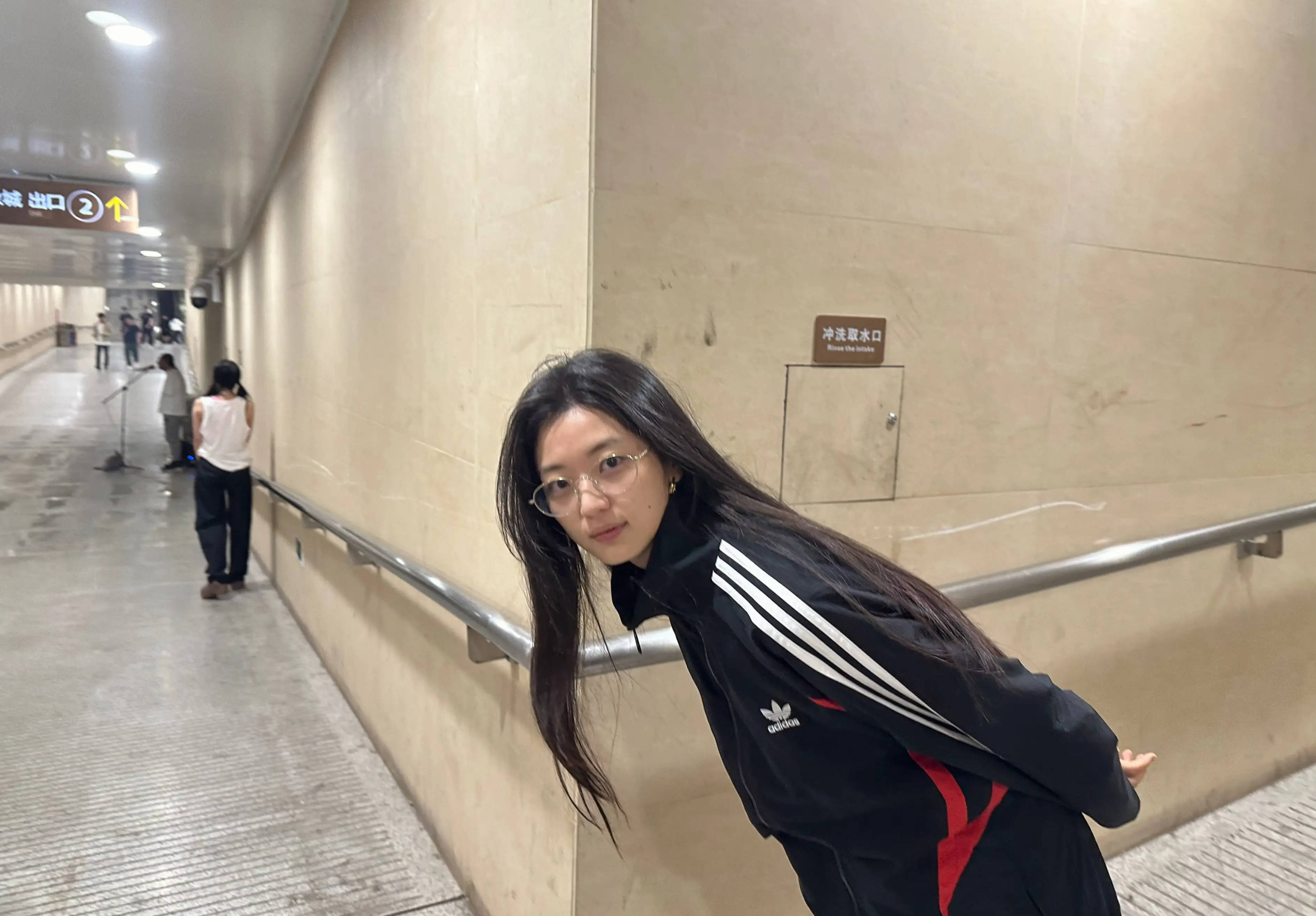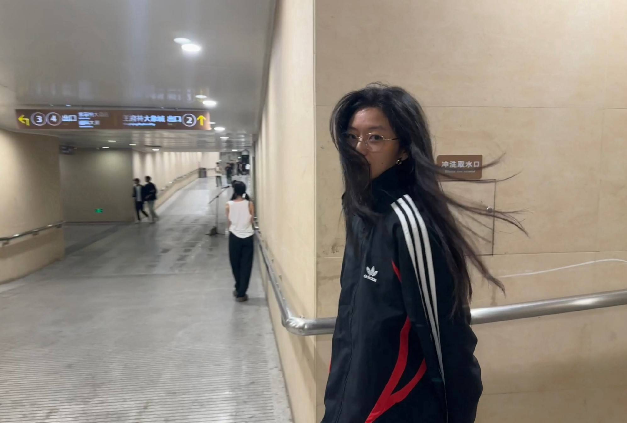 孙千漫步地铁站,松弛感拉满。