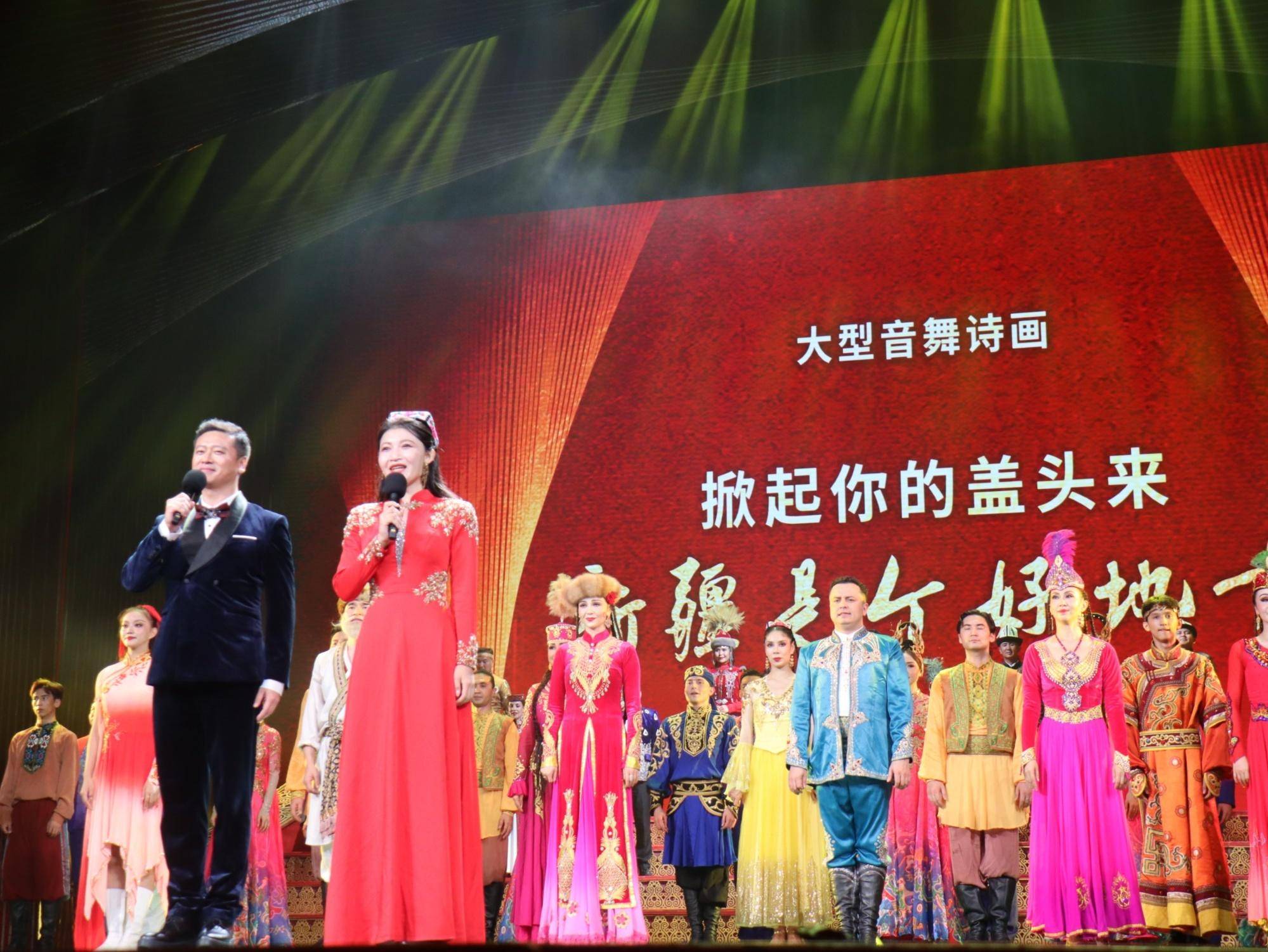 整场演出分为《舞从天山来》、《歌飞新丝路》、《交响昆仑情》三个篇章,通过绚丽多彩的舞台设计和精美绝伦的艺术呈现,向观众展示了一个开放、发展、幸福的美丽新疆。在第一部分《舞从天山来》中,首先展示了新疆的民族特色,新疆舞蹈与民族器乐相得益彰,让观众们仿佛置身于草原之上,感受到新疆朋友的热情。第二部分《歌飞新丝路》则创造性地让新疆民族歌手演唱安徽民歌《八月桂花遍地开》,台下观众自发地打着节拍跟唱,安徽人民与新疆人民的深厚友谊在此刻具象化。第三部分《交响昆仑情》,乐舞搭配上史诗吟唱与物质文化遗产的展示,绚丽多彩的舞台设计搭配精美绝伦的艺术呈现,营造出厚重的史诗感,新疆各族干部群众同舟共济、锐意进取,共同取得了民族团结一心、经济稳步发展以及文化蓬勃兴盛的好成绩,彰显了新疆在新时代实现全面进步和繁荣的壮丽篇章。